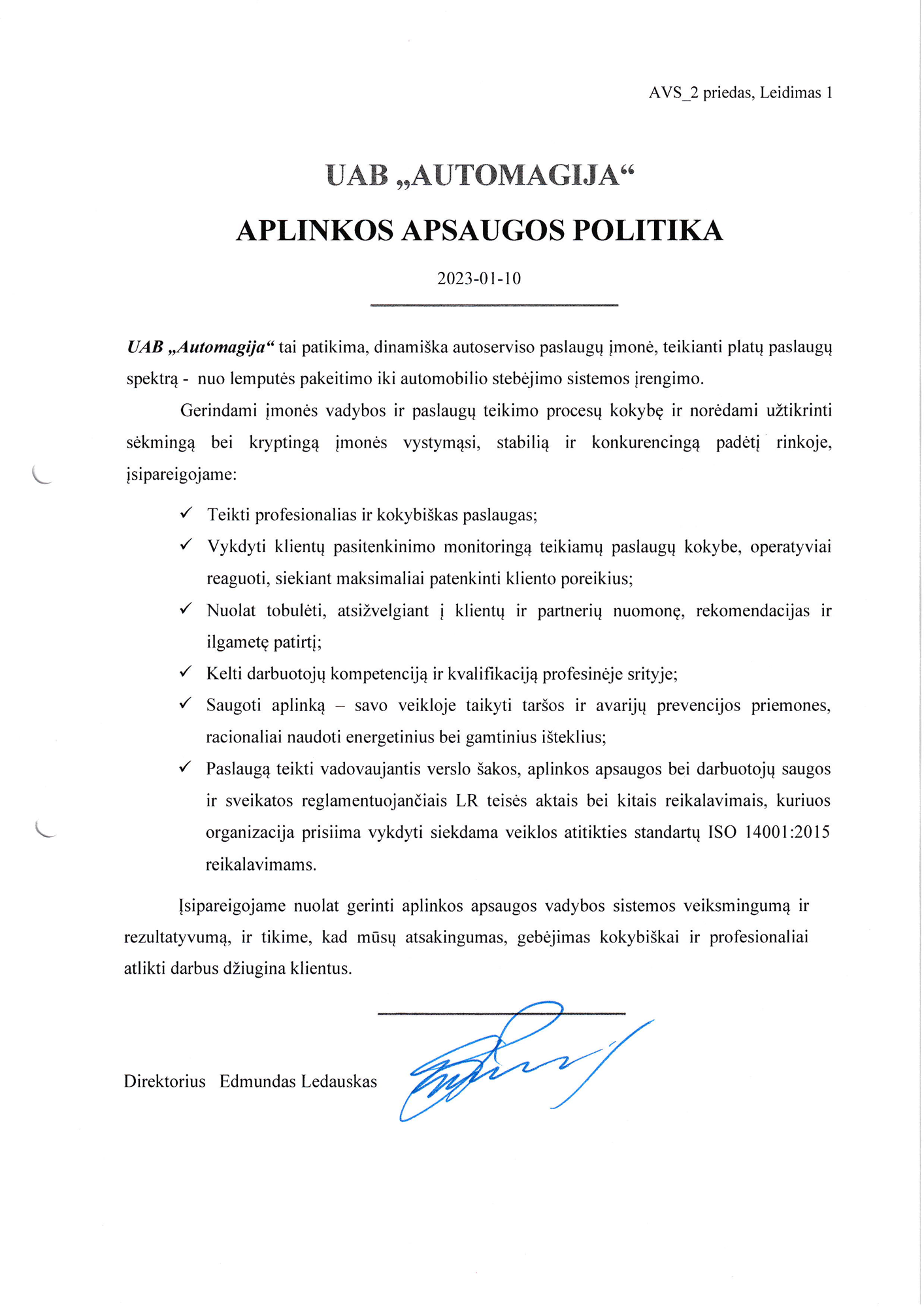 - būti patraukliausia ir teikiančia aukščiausios kokybės automobilių remonto paslaugas įmone, kurioje visada malonu klientams ir darbuotojams.